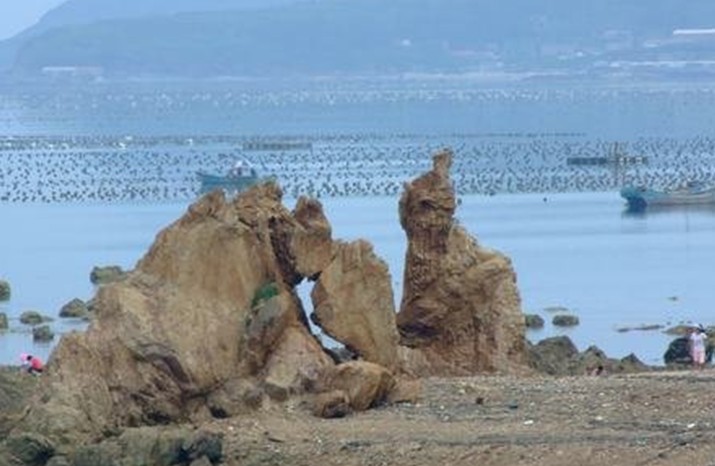 第二天,在大將軍倒下的地方,海水像開(kāi)了鍋,呼嘯翻騰,忽然立起一塊巨石,人們一看很像大將軍的樣子。他的女兒見(jiàn)了,飛快地?fù)溥^(guò)去,還沒(méi)靠近就僵住了,也化成一塊巨石。人們稱那塊像大將軍的巨石為“將軍石”。父女倆屹立在廣鹿島的岸邊,日夜守衛(wèi)著寶島。