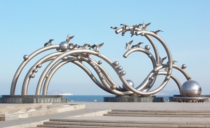 海之韻,一個富有詩意的名字,給予一個富于韻律的廣場, 加上自然的磅礴大氣和設(shè)計者的獨(dú)具匠心造就了大連東海岸上詩情畫意的海之韻廣場。它與星海廣場遙相呼應(yīng),像兩顆明珠照亮了大連的海岸線。版權(quán)所有山東聊城聊之旅國際旅行社有限公司,轉(zhuǎn)載必究!廣場面積3.8萬平方米,由13000平方米的鋪裝廣場、12000平方米的綠地和許多精致雕塑組成。該廣場的主角毫無疑問是雕塑,從西門進(jìn)入廣場,首先奪了你視線去的就是海之韻的主題雕塑,五根曲率不同的白鋼管為主體的雕塑,據(jù)說長19.9米,象征1999年9月是大連建市100周年;21只飛翔的海鷗象征飛向21世紀(jì);50個大小不同的球體即代表原子結(jié)構(gòu),又寓意建國50周年。在我看來五根波浪般的鋼管是波浪造就的五線譜,小鋼球是跳躍的浪花,大海在譜寫它獨(dú)有的樂章,海鷗在和樂起舞,這雕塑仿佛就是對蔚藍(lán)大海的抽象寫生。