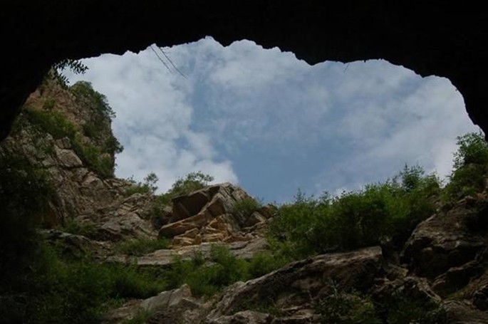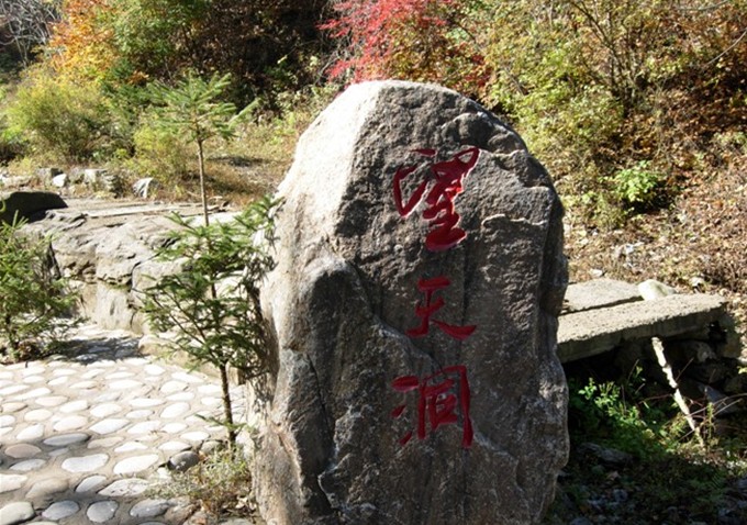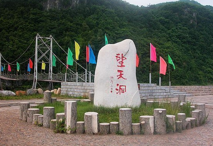 望天洞位于雅河鄉(xiāng)彎彎川村東70余米高的山頂上。該洞發(fā)育于20萬年前,洞總長 7000余米,洞內(nèi)最大的廳6000余平方米,可容納萬人。全洞4大景區(qū)100余景點(diǎn)。洞內(nèi)的迷宮更為奇特,被稱為“北國第一洞,迷宮世無雙”。此洞兩個洞口并列,中間一道兩抱多粗的石梁。右側(cè)洞口有50平方米,洞口石壁上一只展翅昂首的大鳥,面向東方,形象逼真,名曰“鯤鵬朝陽”。左側(cè)洞口有35平方米。兩個洞口酷似一副巨大的眼鏡放在山巔。沿左側(cè)洞口石壁扶鐵欄踏石階經(jīng)“通天橋”,下行30余米,便是該洞的第一大廳--“聚仙廳”,寬闊高大,可納千人?;厥籽鐾?,兩道光柱直射廳中,使人有懷抱紅日、目接青天之感。若在春冬季節(jié)或雨、雪之后,廳內(nèi)云霧繚繞,從洞口向上升騰,云霧與洞口綠樹交相輝映,更是妙不可言。