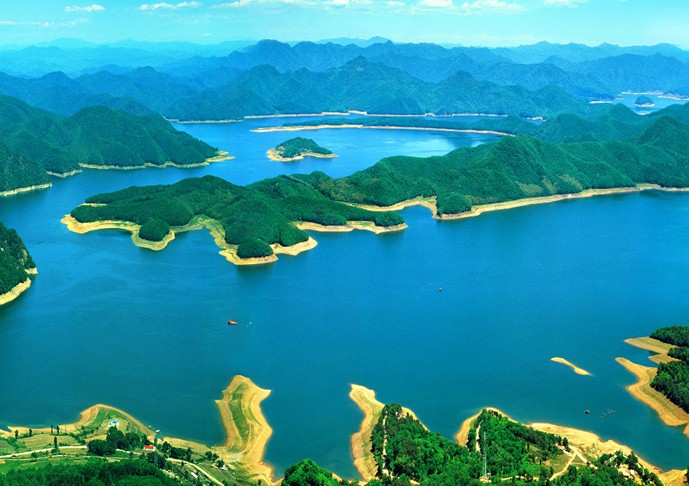桓龍湖,山水如畫,景色宜人。登高遠(yuǎn)眺,只見:蕩波浮影,白浪滔滔,初如滿江白鵝鼓翼飛舞,逐似萬馬奔騰咆哮,驚天動地,雄奇壯觀。坐臥湖邊,近觀:群山環(huán)抱,江水縈繞,碧波萬頃,水天一色,旅游船劈風(fēng)斬浪,捕魚人蕩舟其間,漁翁江邊垂釣,游人岸邊漫步,好一幅絢麗多彩的風(fēng)景畫,使人醉心其間,忘卻所在。搭舟漫游其間,重山環(huán)抱,青松搖搖擺擺,綠水纏繞,碧波溶溶漾漾。兩岸綠樹相競,山花爛漫,水鳥沙灘嬉戲,群魚浪里歡躍。目之所在,皆為綠色,眼之所 及,即為綠水。昂立船頭,乘風(fēng)破浪,撫舷拍桿,臨江而嘯,使人心曠神怡,陶然自得,喜溢言表,一時豪氣奮發(fā),躊躇滿志。