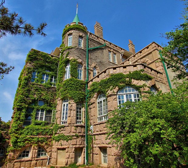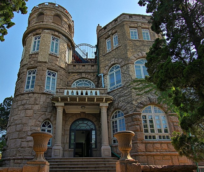 八大關景點南端有一處伸入海中的呷角,花石樓就坐落于此處。花石樓背靠八大關,面臨第二海水浴場,風景獨特,環(huán)境優(yōu)美。 建于1930年,外墻由花崗巖石砌筑,塔樓頂部為雉堞式女兒墻?;ㄊ瘶鞘且淮比诤狭宋鞣蕉喾N建筑藝術風格的歐洲古堡式建筑,既有希臘和羅馬式風格,又有哥特式建筑特色。建于臨海岸岬角部位,地勢突兀,三面臨海,氣勢恢宏,已成為八大關風景療養(yǎng)區(qū)的標志性建筑物。