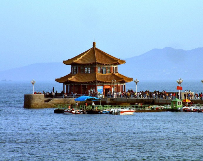 現(xiàn)今的小青島上,黑松遍布,櫻花、碧桃、石榴、木槿、紫薇等花木扶疏,琴女雕塑那婀娜的身姿和造型別致的花廊、水榭、涼亭、餐廳等,使小青島更加?jì)趁膭?dòng)人。