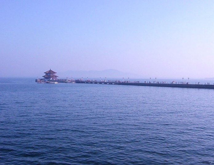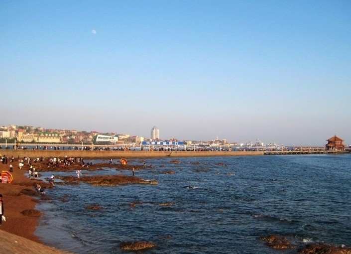 經(jīng)過數(shù)次重修和改建,現(xiàn)橋身長401.45米,其中引橋長236.1米,孔橋149.7米,回瀾閣處三角形橋頭長15.65米。棧橋南端的雙層飛檐八角亭閣——“回瀾閣”,閣頂覆以黃色琉璃瓦,周圍有24根圓形亭柱,閣占地151平方米,總建筑面340平方米,閣內(nèi)為兩層圓環(huán)形亭堂,中央有34級螺旋式階梯,登樓遠眺,前海景色盡收眼底,即為青島十景之一“飛閣回瀾” 。版權(quán)所有山東聊城聊之旅國際旅行社有限公司,轉(zhuǎn)載必究!重建后的棧橋不僅保持原有風貌,且更加雄偉壯麗。前海棧橋是青島歷史的見證,現(xiàn)為青島市重點的文物保護建筑。 前海棧橋是青島的象征。游人漫步于棧橋海濱,可見青島外形如彎月,棧橋似長虹臥波,回瀾閣熠熠生輝。所謂“長虹遠引”、“飛閣回瀾”所指即此。遠處,小青島如螺,島上樹影婆娑、綠蔭噥噥,一座白燈塔亭亭玉立。灣東側(cè)和北側(cè),紅瓦綠樹交相輝映,各式建筑參差錯落的分布在海岬坡地之上。灣西側(cè)的現(xiàn)代化高層建筑緊靠海岸拔地而起,壯麗恢宏。沿岸的防波堤由花崗巖壘砌,高出水面10余米。漲潮時,驚濤拍岸,激起簇簇雪白浪花,引來無數(shù)游人觀看;潮退后,赭色巖礁和金色沙灘露出水面,海灘上滿是趕海拾貝的游人。近幾年,青島開展了“挽留海鷗”的活動,每逢風平浪靜之時,成千上萬只海鷗在灣內(nèi)自由翱翔,使美麗的青島灣充滿了勃勃生機?! ?/p>
