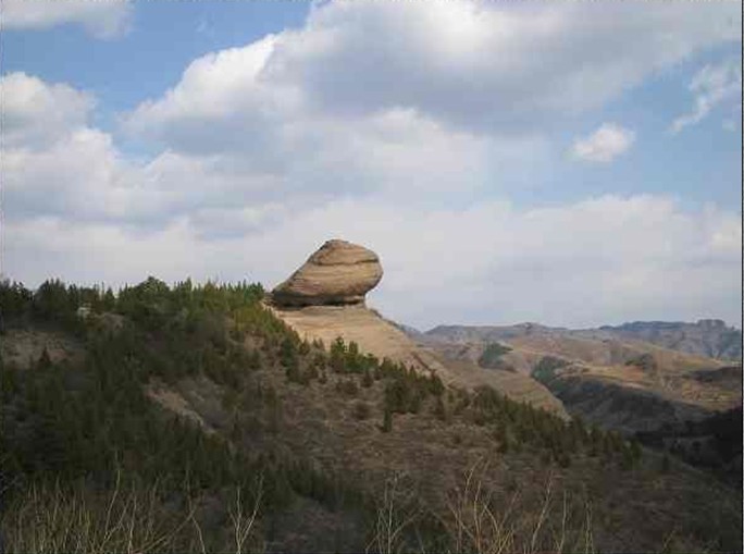 在承德市武烈河東岸馨錘峰的東南端。隔一條山谷,有一巨大的巖石,踞于群峰之巔,似一青蛙欲躍蒼穹,故名。是承德十大自然勝景之一。 蛤蟆石,長約二十米,高四十多米。蛤蟆頭探出懸崖,腹下有南北兩個空洞,洞室南北相連,東西貫通,南洞最大,高一米八,寬八米,縱深九米。夏天游覽至此,可納涼消暑。蛤蟆脊背由承德礫巖中的卵礫石組成。顆顆卵石,光滑細膩,構成了凹凸別致的紋體。其背地勢比較平坦,大小可容納數十人。 除此之外,另外兩個蛤蟆石,一個蹲在蛋糕山東側石棚下邊的平臺上,長不過三米,張口昂首,背部凹凸的卵石為鈣質所覆蓋,光滑而明亮;另一個在雙塔山東面雕溝溝口的西山崗上,坐東朝西,正對雙塔。它體態(tài)渾圓,頭頂平直略上翹,張著向上傾斜的大嘴。內可容十余人蹲坐。因此又被稱作蛤蟆嘴。 三塊蛤蟆石的成因各自不同。