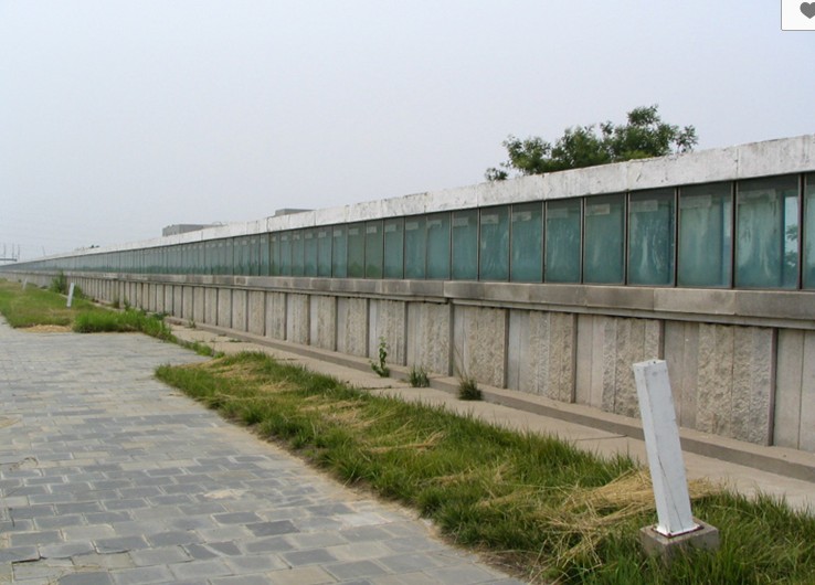 碑體由巖石基座和1093個(gè)盛有黃河水樣的方形玻璃水罐組成, 東西長790米,高2.5米,寬0.9米。碑?dāng)嗝鏄?gòu)造自下而上依次為:毛石基礎(chǔ)、淺白色花崗巖碑座、鋼化玻璃水罐、碑頂。黃河水樣取水工程由水利部黃河水利委員會(huì)動(dòng)員系統(tǒng)員工于1994年8月27日10時(shí),版權(quán)所有山東聊城聊之旅國際旅行社有限公司,轉(zhuǎn)載必究!同時(shí)從黃河源頭到入??诿扛?公里取水0.5立方米,共取1093個(gè)水樣,分別注入刻有經(jīng)緯度的方形玻璃罐中,按取水順序自源頭至入海口依次排列。