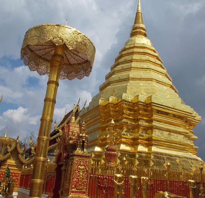 素貼山,位于清邁以西16公里處,海拔1,667米,是清邁天然的了望臺(tái)。普拉素貼寺(WatPhraThatDoiSuthep)是山上的主要游覽點(diǎn)之一。素貼山DolSuthepMountain位于清邁市南6公里處,海拔1000米,是清邁市的標(biāo)志。當(dāng)?shù)厝A語稱此山為“遇仙山”或“會(huì)仙山”,因山上有著名的素貼寺而聞名。山坡上開滿五色玫瑰,山頂白云繚繞,風(fēng)光秀麗。登臨山頂,清邁市全景盡收眼底。