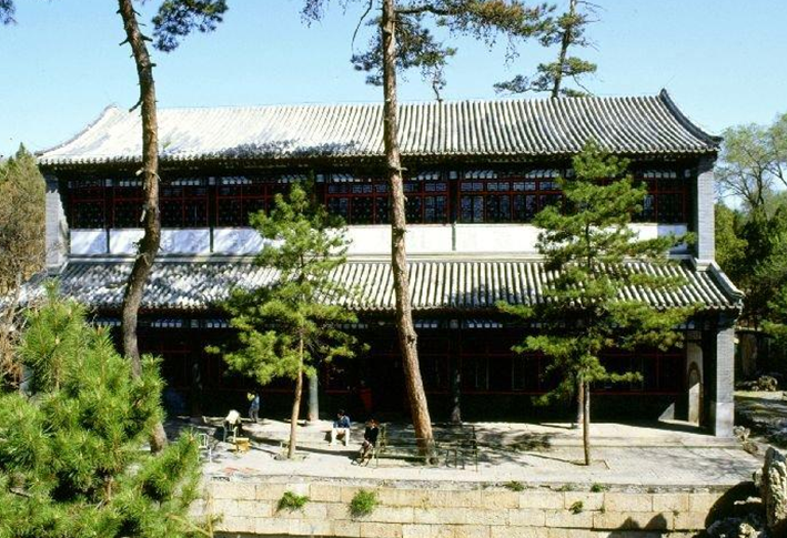 文津閣位于千尺雪景區(qū)之北。建于乾隆三十九年(公元1774年),是內(nèi)廷四閣中第一座建成之閣。乾隆帝對(duì)在此建閣貯書極為得意,認(rèn)為“山莊居塞外,伊古荒略之地,而今則閭閻日富,禮樂日興,益茲文津之閣,貯以四庫之書,地靈境勝,較之司馬遷所云名山之藏,豈啻霄壤之分也哉?”加之每年帝王諸臣、各族首領(lǐng)和外國使節(jié)都云集山莊,將皇家藏書樓建在此地,更可以標(biāo)榜天朝的文治武功。文津閣內(nèi)原藏《古今圖書集成》萬卷、《御制詩》四集,1785年《四庫全書》也曾收藏于此。辛亥革命后,《四庫全書》運(yùn)往北京圖書館,《古今圖書集成》早年已被軍閥盜賣凈盡。