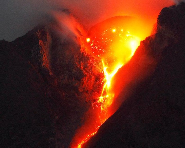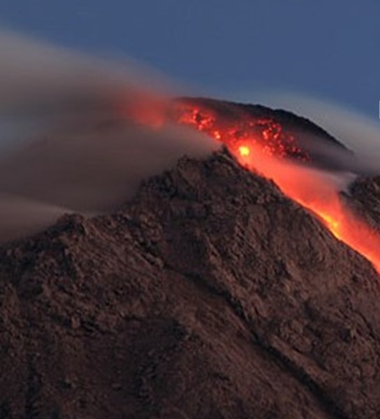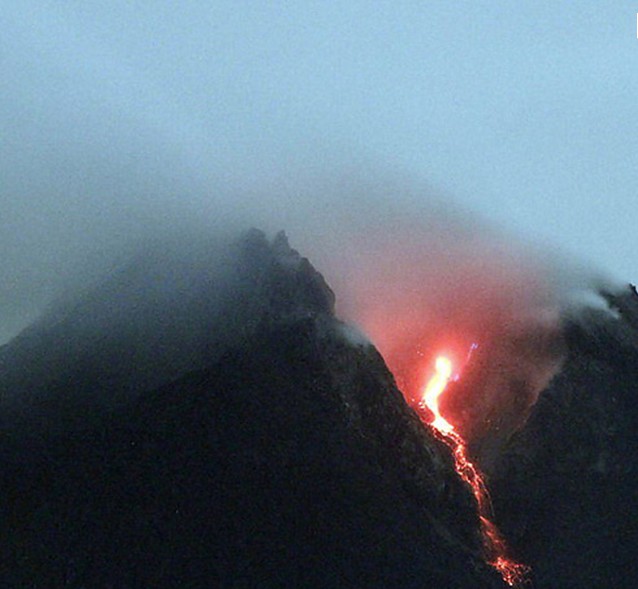 默拉皮火山位于印度尼西亞爪哇島的中部。在日惹東北32公里,海拔2911米,默拉皮意為“不滅之火”,是一個(gè)錐形火山,也是印度尼西亞活動(dòng)性最強(qiáng)的火山,1006年首次爆發(fā),山頂粉碎,毀滅了中爪島的一個(gè)王國(guó)。埋沒(méi)世界七大奇觀之一的婆羅浮屠佛塔。1548年以來(lái)又噴發(fā)68次,平均兩三年噴發(fā)一次,每次都有傷亡?;鹕骄嚯x日惹市相當(dāng)近,山麓居住著幾千人,有的村莊在海拔1700米的高處,當(dāng)?shù)鼐用褡裥幸环N古老的儀式,每年都在火山口旁邊牲口供祭,以期安撫默拉皮山的神靈,但死亡依然頻頻降臨。由于其威脅人類居住地的安全,被國(guó)際地球化學(xué)和火山學(xué)協(xié)會(huì)列為應(yīng)當(dāng)加強(qiáng)監(jiān)督與研究的全球16座火山之一。