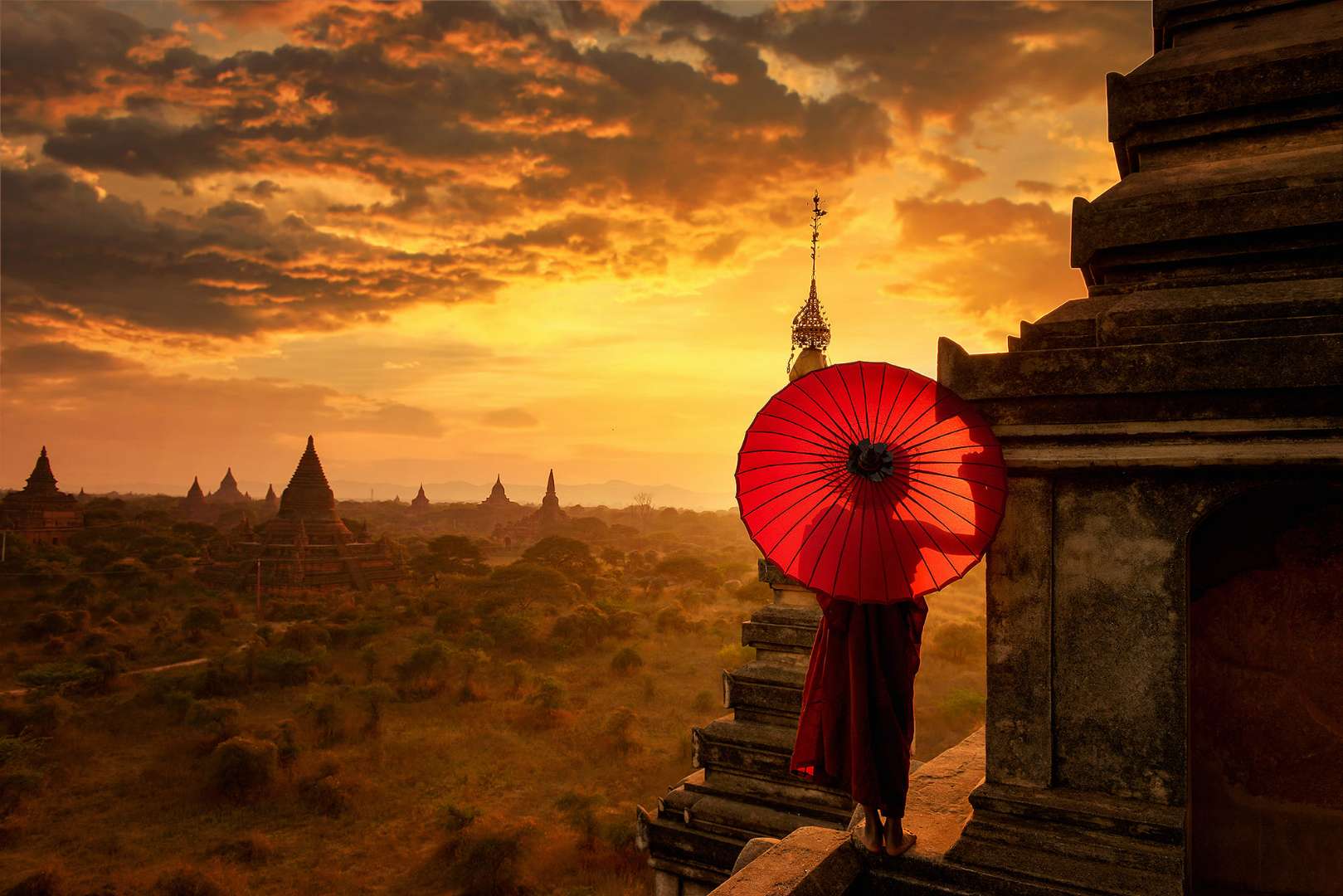 漫步在約25平方公里面積的古城蒲甘,處處可見大、小不一的佛塔矗立在街頭巷尾。真可謂:“出門見佛塔,步步遇菩薩”。據(jù)統(tǒng)計,自公元11世紀(jì)到13世紀(jì),蒲甘先后建造的佛塔就達萬余座,故蒲甘也被稱為“萬塔之城”。數(shù)百年來,雖歷經(jīng)戰(zhàn)火兵災(zāi)和1975年的大地震,蒲甘仍存有佛塔千余座。