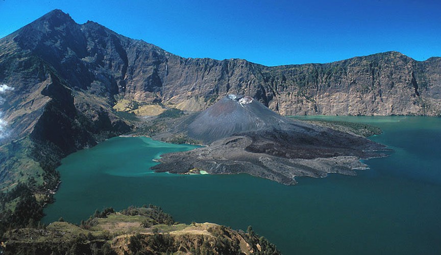 在Loyok以北,在Rinjani山坡上。這里山川壯麗,當?shù)氐乃趾洹?/p>