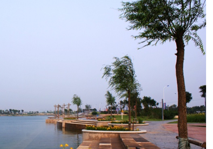 海河外灘公園占地面積13萬(wàn)平方米,是區(qū)委、區(qū)政府本著營(yíng)造城市開(kāi)敞空間、充分展示城市品位的思路規(guī)劃建設(shè)的。廣場(chǎng)東西長(zhǎng)約1000米(岸線長(zhǎng)900米),南北寬60—250米,是全區(qū)規(guī)模最大、最具特色的“還河于民”的民心工程,共拆遷公建住宅及臨建3.3萬(wàn)平方米。廣場(chǎng)的高架平臺(tái)迎賓步道長(zhǎng)1000米,平均寬9米,起伏高度1.8——7.5米(下為箱體),供市民休閑、散步。在外灘的整體設(shè)計(jì)上,要求著重體現(xiàn)“為民”和“超前”理念。開(kāi)闊的空間無(wú)疑使其成為濱海地區(qū)最大的休閑廣場(chǎng),為百姓休閑、健身提供了一片廣闊的天地,體現(xiàn)了“還河于民”的主導(dǎo)思想,改變目前人們臨水不親水的現(xiàn)狀。