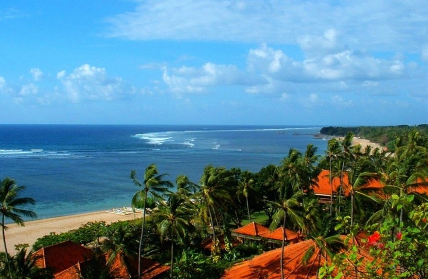 該島由于地處熱帶,且受海洋的影響,氣候溫和多雨,土壤十分肥沃,四季綠水青山,萬花爛漫,林木參天。巴厘人生性愛花,處處用花來裝飾,因此,該島有“花之島”之稱,并享有“南海樂園”、“神仙島”的美譽。島上大部分為山地,全島山脈縱橫,地勢東高西低,有四五座錐形完整的火山峰,其中阿貢火山(巴厘峰)海拔3142米,是島上的最高點,附近有曾于1963年噴發(fā)過的巴都爾活火山。島上沙努爾、努沙•杜爾和庫達等處的海灘,是該島景色最美的海濱浴場,這里沙細灘闊、海水湛藍清澈,每年來此游覽的各國游客絡繹不絕。