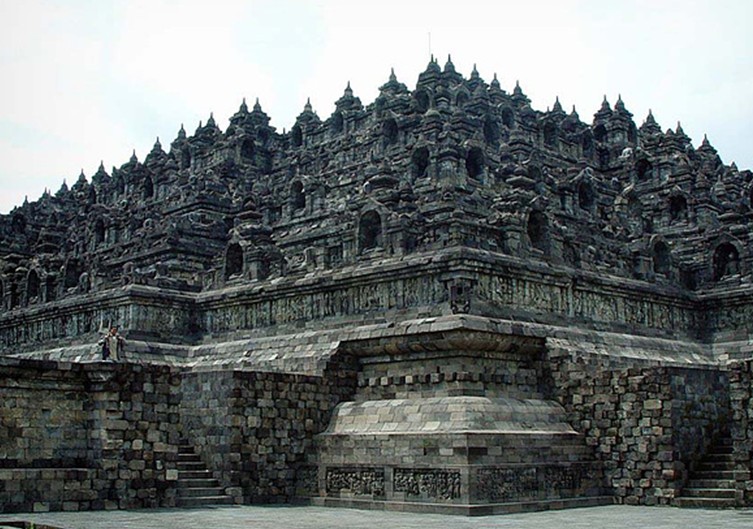 婆羅浮屠位于印度尼西亞,大約于公元750年至850年間,由當(dāng)時統(tǒng)治爪哇島的夏連特拉王朝統(tǒng)治者興建。“婆羅浮屠”這個名字的意思很可能來自梵語"Vihara Buddha Ur",意思就是“山頂?shù)姆鹚隆?。后來因為火山爆發(fā),使這佛塔群下沉、并隱蓋于茂密的熱帶叢林中近千年,直到19世紀(jì)初才被清理出來。與中國的長城、印度的泰姬陵、柬埔寨的吳哥窟并稱為古代東方四大奇跡。