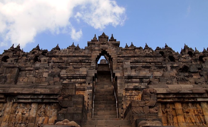 沒有文字記錄誰是婆羅浮屠的建造者,也不知道為何而建。通過比較佛塔隱式地基的浮雕和王室族譜的銘文,人們估計佛塔建造于公元八和九世紀(jì)。婆羅浮屠可能于公元800年建成。