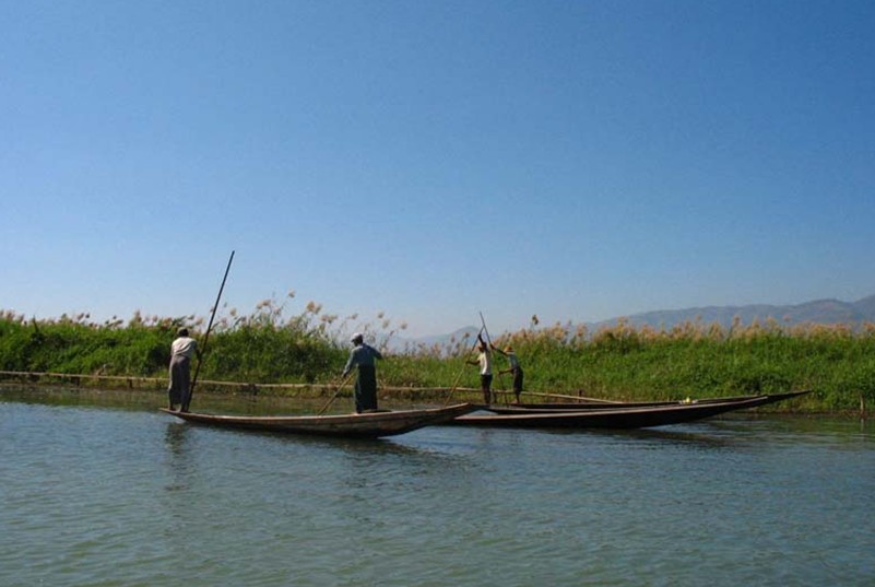 茵萊湖一帶的一萬多戶居民,大部分屬于茵達族,散居于湖邊的180多個村落中。他們主要以捕魚為主,勤勞樸實,殷實富足,熱情好客。也有相當多的人在浮島上從事蔬菜種植或養(yǎng)蠶、紡織、打鐵、制作金銀手飾等。