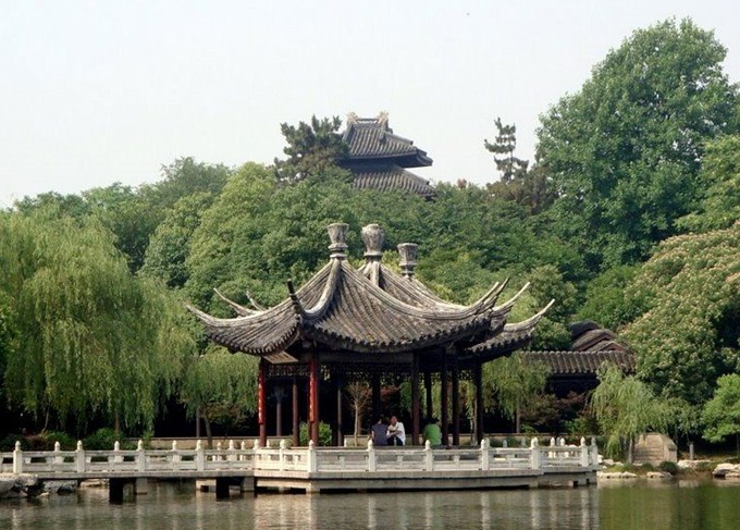 公園由法租界當(dāng)局所建,始于1917年,1922年完工,故稱法國(guó)公園。代表性的建筑為花園中心的六角石亭一座(民國(guó)重建時(shí)改為八角亭)。以石亭為中心,向周圍的六條路口輻射,各路之間形成不同造型的園林小區(qū)域,小區(qū)域內(nèi)路徑曲折,小橋流水,綠柳成蔭。公園外圍以鐵欄桿繞護(hù),欄桿外為一條環(huán)繞公園的馬路。
