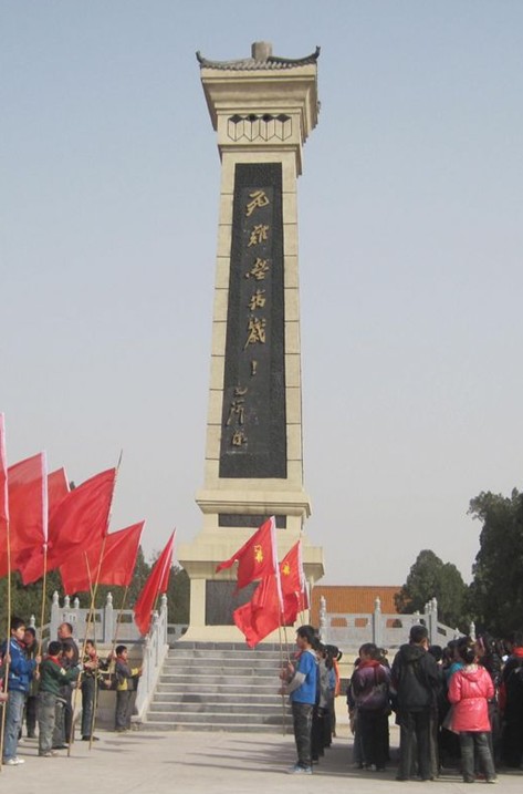 長治市武鄉(xiāng)縣城東45公里處監(jiān)漳鄉(xiāng)的長樂村,是抗戰(zhàn)時期我八路軍主力粉碎日寇對太行山根據(jù)地實行“九路圍攻”的主要戰(zhàn)場。1938年春天日軍調(diào)集重兵30OOO余人,由博愛、邯鄲、邢臺、石家莊、陽泉、榆次、太谷、沁縣、長治等地分九路對我晉東南地區(qū)革命根據(jù)地進行圍攻,妄圖在遼縣、武鄉(xiāng)、榆社一帶消滅我八路軍主力,摧毀我初創(chuàng)的太行抗日根據(jù)地。4月16日,日軍北犯榆社撲空后,版權(quán)所有山東聊城聊之旅國際旅行社有限公司,轉(zhuǎn)載必究!毀棄武鄉(xiāng),向襄垣竄去,我八路軍129師主力與115師一部遵照朱德總司令和彭德懷副總司令的命令,在劉伯承師長、鄧小平政委和徐向前師長的指揮下,以四個團的兵力追殲敵軍,我軍以急襲手段將日軍壓縮在馬家莊、里莊灘至長樂村一帶的河谷地區(qū),截為數(shù)段,各個擊破,殲敵2200余人,取得了粉碎日軍九路圍攻的決定性勝利。為紀(jì)念這一輝煌勝利,當(dāng)?shù)卣陂L樂村建起了雄偉的長樂村戰(zhàn)斗紀(jì)念碑。 每逢節(jié)假日,人們常常到這里瞻仰紀(jì)念碑,緬懷革命先烈。