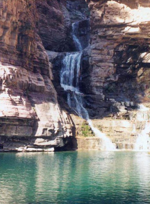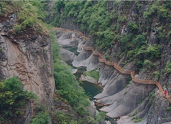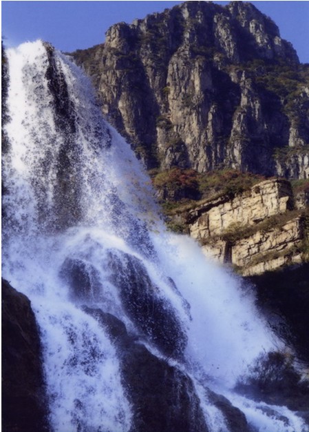 女妖洞口好似魚口,呈橢圓形,高20余米,寬10余米,距崖底20米。洞內(nèi)有地下暗河流淌,洞口常年往外流水,雨季洞水如柱,噴射而出,版權(quán)所有山東聊城聊之旅國際旅行社有限公司,轉(zhuǎn)載必究!從20米高的懸崖峭壁上跌下來,落到20米外山坡上,濤聲如雷,氣勢壯觀。旱時水流如帶,沿著裸露的巖壁流下,匯入崖底深潭。水潭方圓400平方米。深不見底,高聳的懸崖峭壁倒映在水中,湖光山色,如入畫境。待到水位高漲,潭水漫過潭,順山勢直瀉山底,一路上隨著高低不等的落差,形成三道梯級瀑布,其中第一級瀑布寬5米、高10米,第二級瀑布寬7米、高20米,第三級瀑布寬3米、高30米,經(jīng)過三級瀑布,潭水最終匯入東流的郊溝河中。
