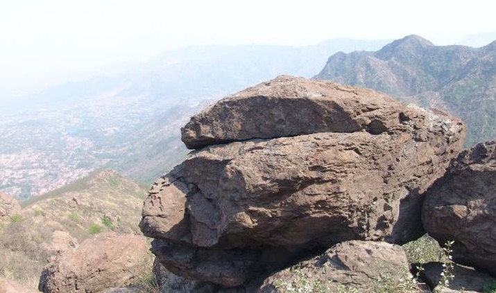 摩訶山峻峰雄峙,大壑深澗,巨石危巖,奇險(xiǎn)莫測。頂峰聳入云中,舊曾建有塔和禪院,皆失無考,僅存遺址石墻,尚能勾起人們對其原貌的想象。據(jù)傳山頂寺中,原有一小和尚,腦力遲鈍,數(shù)日僅學(xué)“摩訶”二字。冬天,和尚們下山募化,僅留其守寺,不留食物,待月余歸,但見小和尚仍面色紅潤,問其,則曰:口不絕吟“摩訶”,饑則煮石,食之甘美。“摩訶”山名即由此而得。