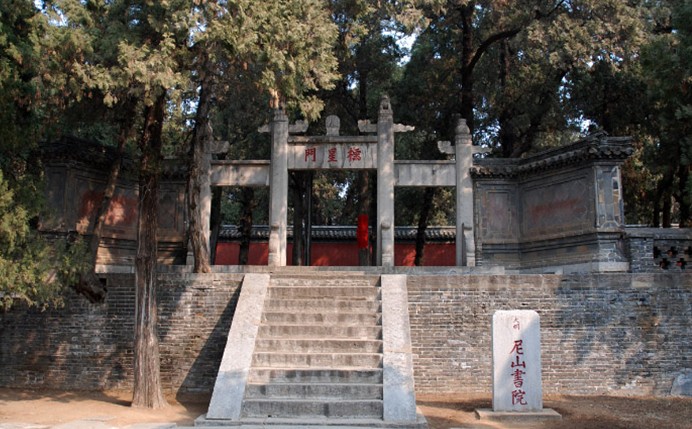 尼山書院,位于山東曲阜縣城東南30公里處的尼山原名尼邱山,因避孔子諱而改名為尼山。海拔340余米,山頂五峰連峙,惟中峰為尼丘。據(jù)《史記》記載:孔子父母“禱于尼丘而得孔子”,故尼山名揚(yáng)遐邇。這里,中峰東麓有孔子廟和尼山書院等建筑物;另有五老峰、魯源林、智源溪、坤靈洞、觀川亭、中和壑、文德林、白云洞等所謂“尼山八景”。