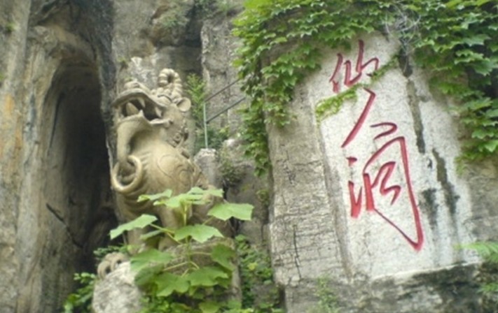 此地懸崖環(huán)列,危巖欲墜。上有蒼松圍繞,下有銀杏凌空,林木茂密,青苔掩映,山光嵐氣,令人迷戀,故歷代游客共推勝地。叢柏庵北有深邃山洞,可容千人,半明半暗,幽曲穹窿,南北兩門(mén),中間相通,還有天窗,上下兩層。三伏盛夏,洞中寒氣襲人,入內(nèi)小憩,氣爽神清,別有天地,猶如仙境,因名仙人洞。