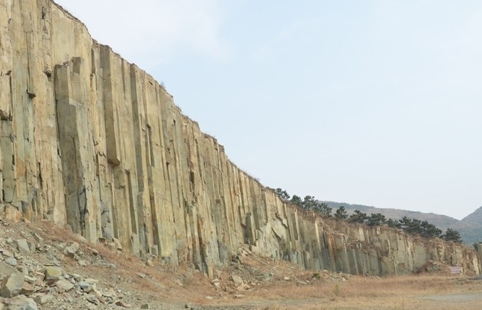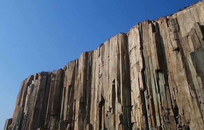 據(jù)考證,此山是1億多年前由火山巖漿冷凝而成,現(xiàn)裸露部分高達(dá)28米,厚約 30米,跨度達(dá) 150米。柱狀節(jié)理石柱群由無數(shù)根直徑一米左右、呈四棱、五棱或六棱柱狀的單個(gè)柱體緊密排列組成,氣勢(shì)雄偉,非常壯觀。柱體內(nèi)含有許多安山巖氣孔晶洞,洞內(nèi)有大量的方解石、冰洲石晶體,呈菊花瓣?duì)?,具有極高的經(jīng)濟(jì)價(jià)值、觀賞價(jià)值和科研價(jià)值。尤其在安山巖中,發(fā)現(xiàn)此柱狀節(jié)理在我國(guó)尚屬首列,是世界柱狀節(jié)理石柱三大奇觀之一,從規(guī)模和科研價(jià)值上,都可與世界聞名的英國(guó)玄武巖狀節(jié)理“巨人堤”和美國(guó)響巖體柱狀節(jié)理“魔鬼塔”相媲美。