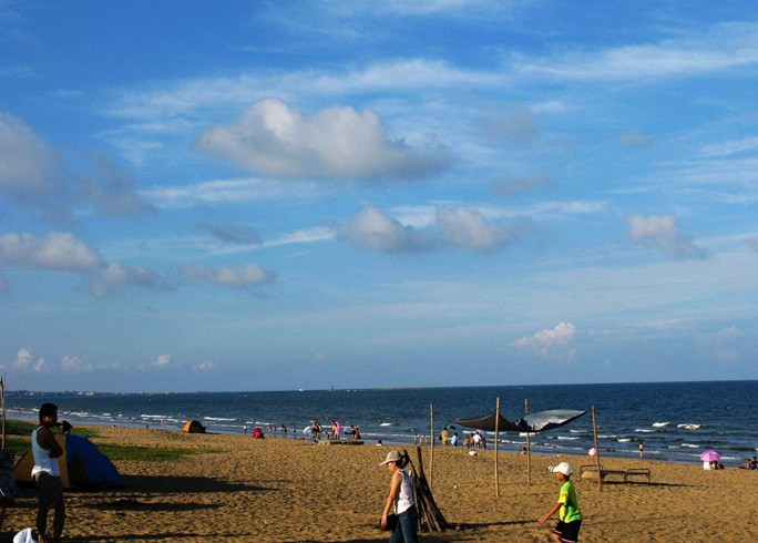 這里的海灘特別平整,每天可以看到兩次漲潮落潮奇觀:落潮時(shí)海水迅速消失,僅剩下裸露的萬畝灘涂和來不及回到大海的魚蝦蟹貝;漲潮時(shí)海水八方齊涌,萬畝灘涂迅即淹沒,極為壯觀。