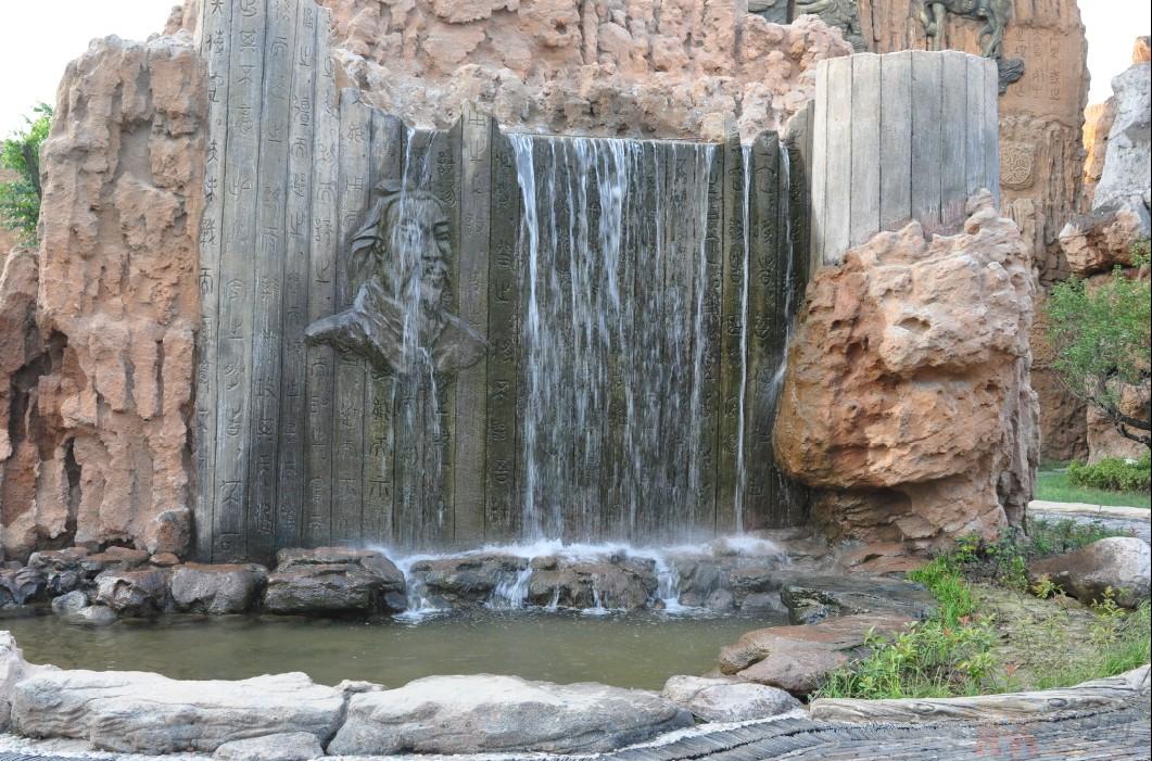 游客穿過春秋版圖廣場來到儒家區(qū),一座23.8米高的孔子像依山而建,形態(tài)逼真。山上結(jié)合石雕與文字表述孔子一生的經(jīng)歷。地面上則采用古書竹卷的形式進(jìn)行布局,刻論語于其上,72賢人弟子坐落于此,再現(xiàn)孔子“杏林授徒”的春風(fēng)和煦景象。