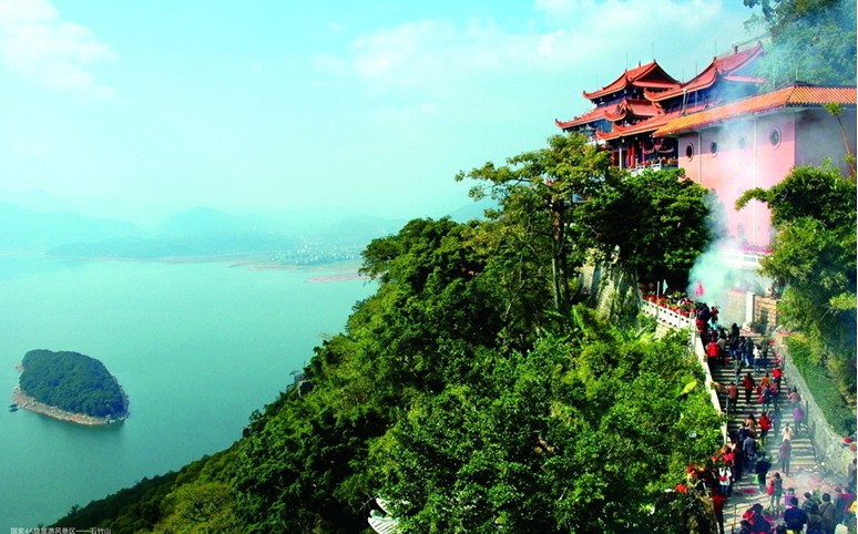 位于福州市南福清市西宏路鎮(zhèn),緊靠鯉魚湖,是福建省著名的風景名勝。因山上石奇巖怪,竹松蒼翠,故名。 去石竹山,可在福州市乘長途汽車至宏路鎮(zhèn),行車約2小時。到達宏路鎮(zhèn)向西即至東張水庫,水庫西北方向,即為石竹山。石竹山屹立在危崖峭壁之上,從石竹山下步行而上,有兩條寬約1米的千級石階徑道曲折而上,即至石竹寺。石竹寺又名九仙閣,相傳在漢武帝劉乇時,在福州市于山修煉的何氏九兄弟在此得道成仙,后人建筑九仙閣,以資紀念。九仙閣始建于唐大中三年(849年),宋、明重修,1979年又重修。寺內(nèi)有大雄寶殿、文昌閣、觀音亭、石佛宮等建筑,規(guī)模宏大。寺處景色秀麗,石竹山上有龜蛇石、小蓬萊、三重檐、青龍洞、通天洞、一線天、仙橋、紫云塔等0多處天然美景。寺西有一座龍女巖,傳說為東海龍王的公主化身,近鄰還有九鯉仙醉臥巖,一條長約丈許、寬約尺余的石條橫架其間,造化之功,維妙維肖,版權所有山東聊城聊之旅國際旅行社有限公司,轉載必究!此即"天橋"勝景。寺東可俯視東張水庫,山水輝映,景物壯觀。宋代朱熹、明代徐霞客、清代陳寶琛均到過石竹山,且留下題匾。 歸時可順路去福清市西的瑞云塔、彌勒巖一游。