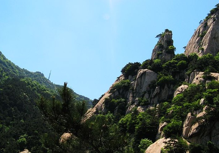 在泰山的東北麓,有一條蜿蜒曲折的登山路直達(dá)岱頂。沿著這條路,可見(jiàn)天燭峰景區(qū)的景致。這里,奇石能言,清泉有聲,大小天燭朝天立,懸崖巨壁夾谷行。將軍山如大將軍披甲,羅漢峰似眾羅漢疊立,大自然的神奇造化,令人嘆為觀止。這里,藍(lán)天高遠(yuǎn),大山空曠,松濤陣陣,白云悠悠,是尋古探幽的好去處,只有到這兒來(lái),才能領(lǐng)略到山林野趣的真諦。