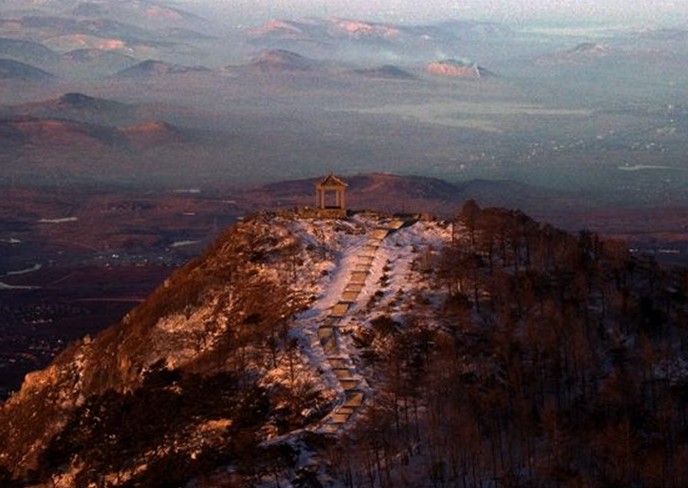 位于南天門西的月觀峰,因與日觀峰東西對望而得名。古時人們說可在這里望見越國,所以又稱越觀峰。在天晴氣朗的夜晚可以在這里看見濟(jì)南萬家燈火,又稱為望府山。山頂有月觀亭,月明星稀之夜,在這里但見皓月當(dāng)空,天地蒼茫,實為世間少見的美景。