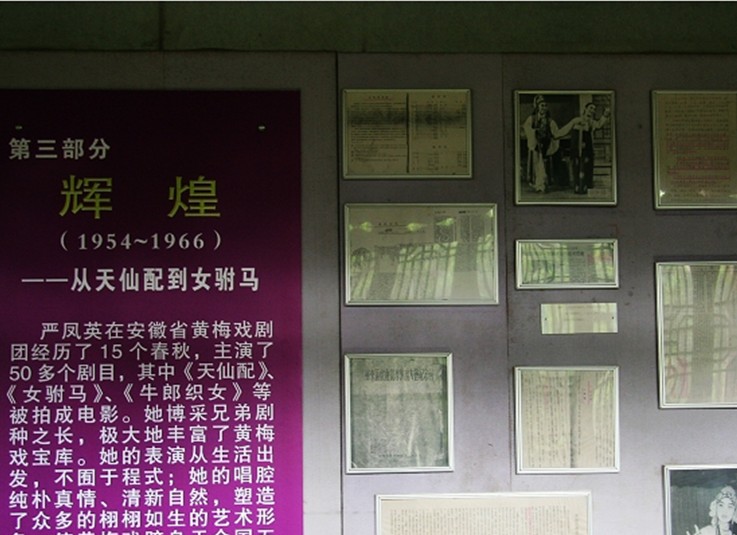 那是1947年的10月份,嚴鳳英當年只有17歲,她那靈雀般的歌喉和輕盈舞姿吸引了秋浦兩岸的百姓,深受大伯大嬸們的喜愛。嚴鳳英是隨她的師父程積善(貴池晏塘人)來到秋浦的,當時搭班唱戲的還有銅陵的桂月娥、桂天賜,殷匯的宋再春、洪連梓等老藝人。先在高坦一大地主的后花園搭臺唱,后在灌口祠堂里唱,據說在唱《槐蔭別》時,嚴鳳英來了例假,被廣大的秋浦觀眾諒解后,又深為沒有看到嚴鳳英“別夫上天”的精彩表演而惋惜。最后在殷匯老街蘇家當鋪大屋唱,據說當時票價僅為三角一張(舊幣)。嚴鳳英在秋浦河兩岸前后共唱了三個月,演出的大戲有《小辭店》、《槐蔭別》、《珍珠塔》、《二龍山》、《山伯訪友》等,小戲有《蘭橋汲水》、《春香鬧學》、《送香茶》、《西樓會》、《打豬草》、《游春》等,如陣陣山野吹來的風,帶著泥土香,陶醉了秋浦兩岸的觀眾。嚴鳳英不僅藝高,人也好,肯結人緣,在秋浦唱戲時,每到一處,還和房東結了干媽干嬸。據現在還健在的八旬老人韓發(fā)祥回憶,嚴鳳英在殷匯唱戲時,恰逢他結婚,新婚之夜,嚴鳳英還和當地小姐妹們一齊鬧新房,大伯、大嬸們親切地喊她“小嚴”或“紅六”,她口口聲聲答應得親嫡嫡的像親生女兒一樣。