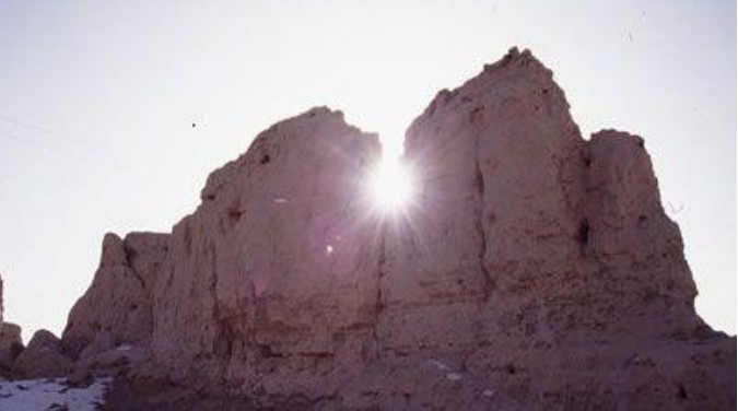 甲渠候官遺址俗稱破城子,位于額濟(jì)納旗南24公里,納林、伊肯河之間的戈壁灘上。為漢代居延都尉西部防線甲渠塞之長——甲渠候駐所。發(fā)掘前,遺址大部分為砂礫掩沒。往西300米,南北排列“一”字形烽燧和雙重塞墻遺跡。