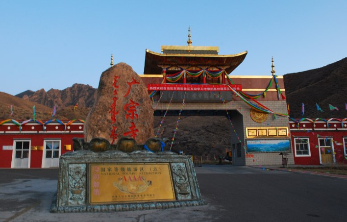 廣宗寺藏名“丹吉楞”,俗稱(chēng)南寺。位于內(nèi)蒙古自治區(qū)阿拉善盟阿拉善左旗巴潤(rùn)別立境內(nèi),賀蘭山西麓的一個(gè)山谷之中,距巴彥浩特鎮(zhèn)東南23公里左右,該寺有6個(gè)屬?gòu)R,是原阿拉善八大寺中規(guī)模最大、名望最高的寺廟。由二十余座建筑群組成。其整個(gè)建筑氣勢(shì)宏偉,富麗堂皇。主要建筑有大雄寶殿、大經(jīng)堂、黃樓寺等。其中供奉西藏第六世達(dá)賴(lài)?yán)镞z體寶塔的大殿稱(chēng)為“黃樓寺”。黃樓寺是一座兩層樓閣的建筑,其前部為81間,后部為49間,全部用黃、綠色琉璃瓦砌成,極為富麗。據(jù)說(shuō),在這座殿內(nèi),除西藏達(dá)賴(lài)六世遺體而外,還保存著飛天人像化石、釋迦牟尼佛留下來(lái)的金佛、唐文成公主的寶劍等珍貴歷史文物。