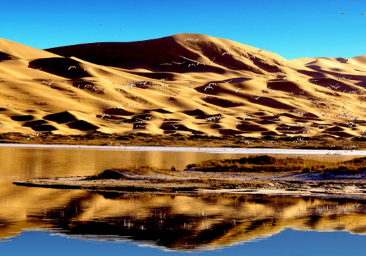 騰格里沙漠天鵝湖已成為阿拉善盟開展沙漠探險(xiǎn)和生態(tài)觀光的最佳旅游地。