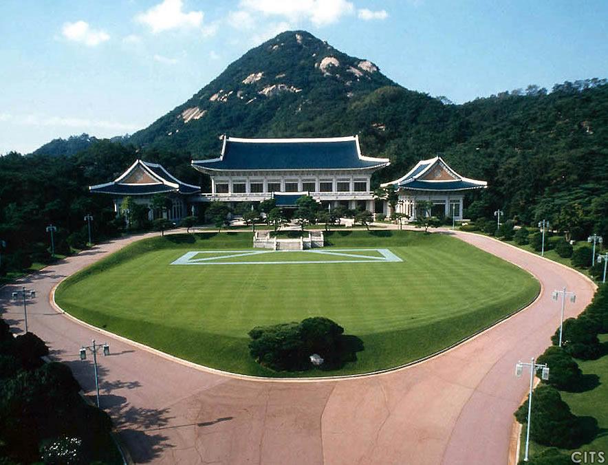 青瓦臺(tái)是韓國(guó)總統(tǒng)官邸,位于首爾市鐘路區(qū)世宗路一號(hào)。 青瓦臺(tái)原是高麗王朝的離宮,1426年朝鮮王朝建都漢城(首爾)后,把它做為景福宮后園,修建了隆武堂、慶農(nóng)齋和練武場(chǎng)等一些建筑物,并開(kāi)了一塊國(guó)王的親耕地。
