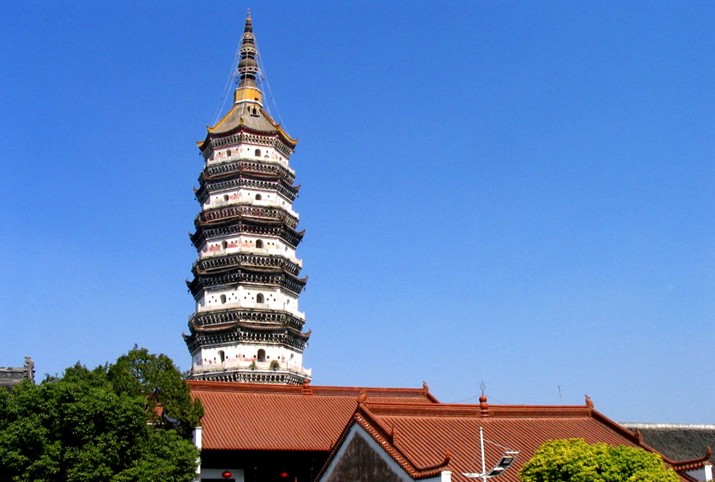 二高:振風塔高60.86米,居高遠眺,方圓十里之美景盡收眼底。面江而立,享有“萬里長江第一塔“美譽。振風塔不但高在藝術結構上,層與層之間比例相差有甚強的藝術風格,自底層向頂呈圓錐形,每層按比例逐漸縮小,改變了以往佛塔建筑的方正直硬規(guī)律。仰望曲線柔美,嵌空玲瓏,如金锏剌空,直沖霄漢。