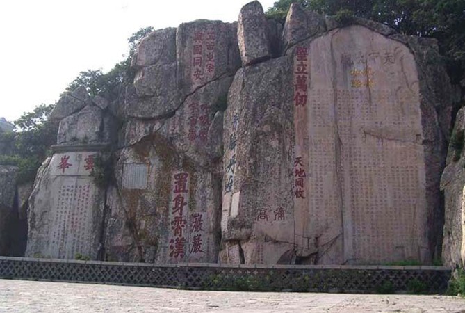 大觀峰和云峰上題刻遍布,版權(quán)所有山東聊城聊之旅國(guó)際旅行社有限公司,轉(zhuǎn)載必究!重重疊疊,能識(shí)者80余處。“天日蒼茫”、“呼吸宇宙”、“置身霄漢”、“青碧丹崖”等大字與《紀(jì)泰山銘》輝映;唐劉仁愿、宋趙明誠(chéng)、元徐世隆、明朱衡、清阮元及施閏章等歷代名流題刻歷歷在目。
