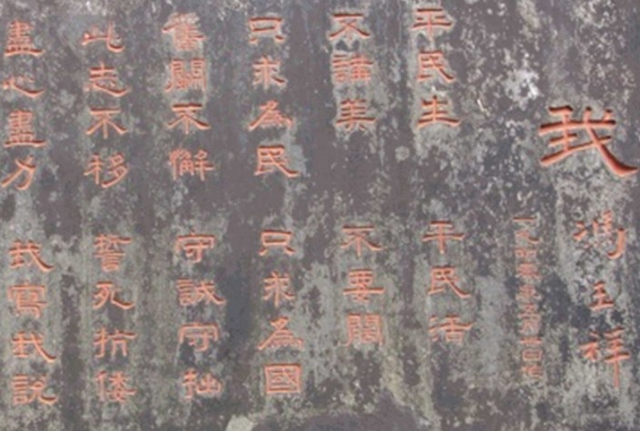 1953年碣刻馮玉祥詩《我》,嵌入墓壁。碣高1.09米,寬1.9米,隸書。