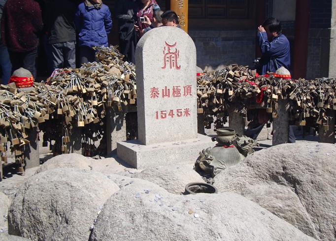四周圍以石欄,是泰山的最高點(diǎn),石上有南陽(yáng)王均于1921年題寫的“極頂”二字。西北側(cè)有“古登封臺(tái)”碑,古代帝王登山祭天,就在此處設(shè)置祭壇。玉皇頂傲視群雄,亭立峰巔,極目四望,確有“一覽眾山小”之感。