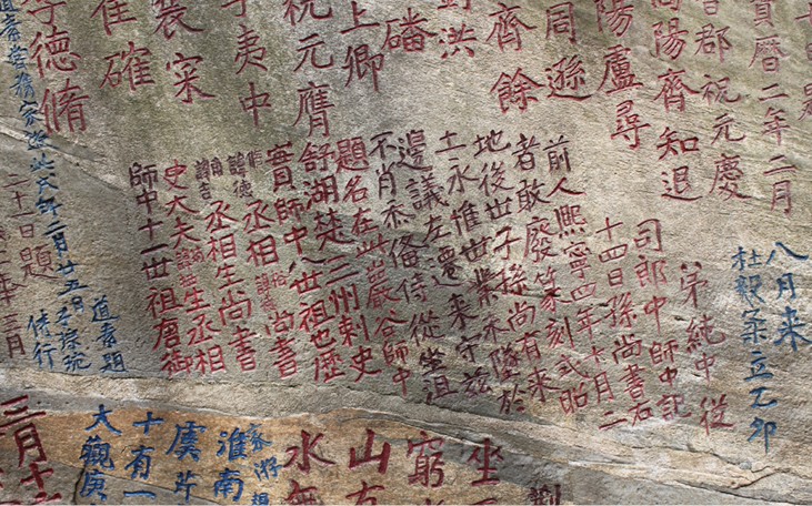 元代以后,眾多游客蜂擁山谷,也留下大量的文字石刻。除了式照唐宋時(shí)的題名、題詩以外,在石刻文字的內(nèi)容方面出現(xiàn)一些新的變化,比如出現(xiàn)了大量的用簡短詞語贊嘆山、洞、泉、石景色的特點(diǎn)。同時(shí),石刻文字的體積增大,字徑往往有一、二尺之多,這都是過去所少見的。明代詩人、安慶知府胡纘宗在石牛上大書“石牛”2字,并刊刻了《山谷寺》詩:“摩詩坐山谷,谷水身邊流,篆密龍蛇動,潭空牛女游”, 版權(quán)所有山東聊城聊之旅國際旅行社有限公司,轉(zhuǎn)載必究!此詩十分形象地描繪了石牛臨澗的景色,令人涌不絕口。胡纘宗還有“山谷”大字題刻,字徑2尺。其它像嘉靖時(shí)御史大夫李元陽、成化時(shí)書法家袁慶祥等人的題名以及大量的“涪涪山谷”、“流云上流”、“天下奇觀”、“水光天色”、“龍門”、“獨(dú)醒處”、“安慶名山”、“幽思”等,都有一定的歷史研究與欣賞價(jià)值。從書法的角度看,這里的石刻包括有隸書、楷書、草書、篆書、行書等多種,每種書體中又富于變化,各具特色,基本上代表了唐代以來我國書法藝術(shù)發(fā)展演變的風(fēng)貌,是一處珍貴的書法藝術(shù)寶庫。