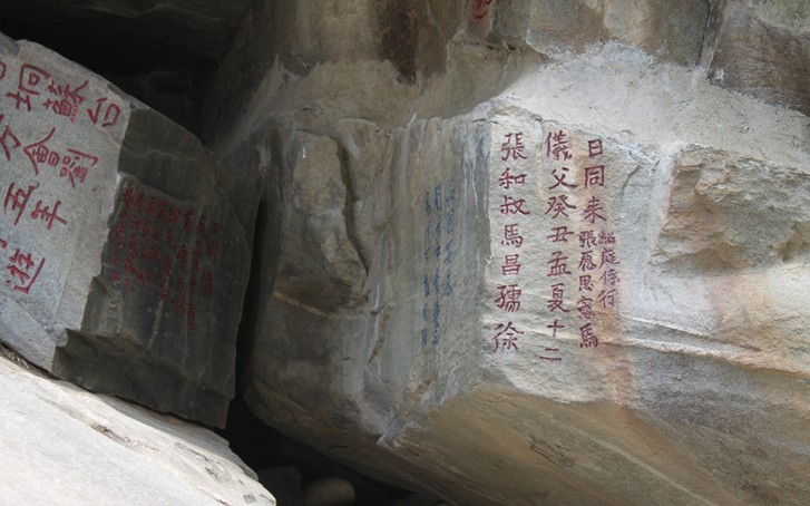 山谷流泉中的3處年代最早的石刻都是唐代的,它們均分布在石牛古洞東壁懸崖上。其中2處是唐代著名散文家,哲學(xué)家李翱任舒州刺史時(shí)游覽山谷的題名。李翱字習(xí)之,隴西成紀(jì)(今甘肅秦安)人。貞元進(jìn)士,授校書郎,后任國事博士。元和十五年以后任廬州刺史、舒州刺史,長慶二年(822年)壬寅游石牛古洞。所刻題名為“翱炅磷盤求壬寅年下元日習(xí)之書”、“挎儲弘運(yùn)上卿盤長慶二年十月廿六日馀奉處交口”,均為真書,或橫排,或豎書直排。還有一處唐代13人題名石刻,系舒州刺史李德修于寶歷二年(826年)所刻。此刻楷書15行,上下豎書成行,字徑7厘米,書法遒勁渾厚。版權(quán)所有山東聊城聊之旅國際旅行社有限公司,轉(zhuǎn)載必究!據(jù)《唐書》載:李德修于寶歷時(shí)出任舒州,后任尚書,為唐代著名的文學(xué)家。