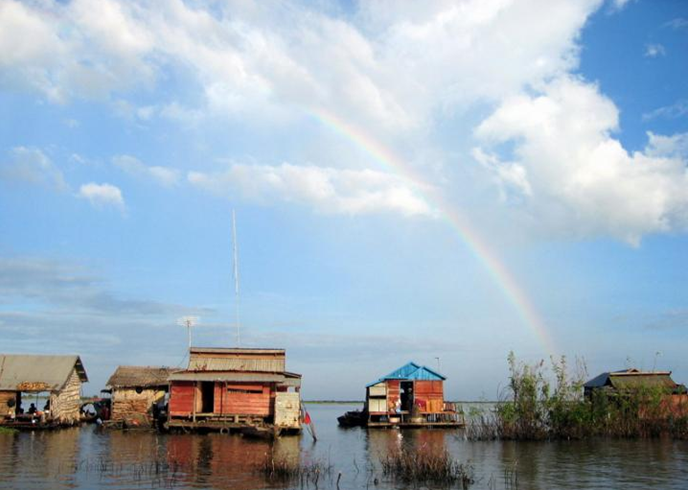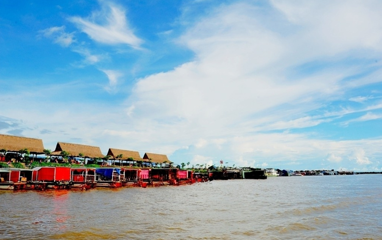 洞里薩湖又名金邊湖,位于柬埔寨境內北部,呈長形位于柬埔寨的心臟地帶,是東南亞最大的淡水湖泊。湖濱平原平坦、廣闊,長500千米、寬110多千米,西北到東南,橫穿柬埔寨,在金邊市與貫穿柬埔寨的湄公河交匯。它像一塊巨大碧綠的翡翠,鑲嵌在柬埔寨大地之上,為高棉民族的發(fā)展與繁榮提供了堅實的資源保障,是柬埔寨人民的“生命之湖”。