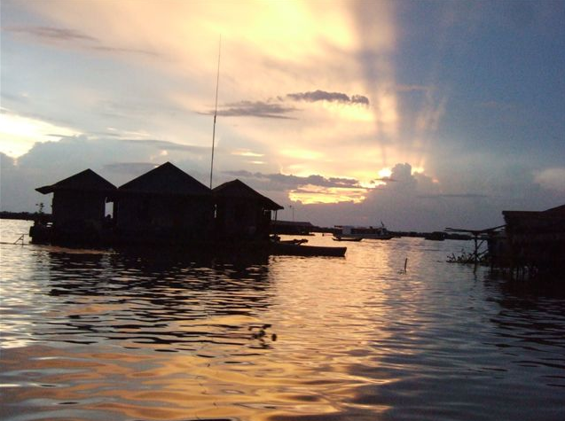 因為湄公河水內含沖積物質所帶來的養(yǎng)份,使得湖中滋生大量的魚蝦,無論旱、雨季都出產甚豐。目前洞里薩湖是柬埔寨北部的主要“肉食倉庫”,湖的周圍有三百萬以上人民直接或間接地以漁業(yè)為生,發(fā)酵及鹽漬的魚是柬埔寨人的主食。每年的5-10月雨季,湖面面積可達11132平方公尺,水深達14公尺;當旱季來臨時,又深只有1公尺。懸殊的變化,使旱季時露出的湖底淤泥,成為農民播種早稻的肥沃良田,雨季時,藏匿無數昆蟲及微生物的雜草沉入湖底,成為滋養(yǎng)魚類的天然飼料。居住在洞里薩湖的居民,都是住在高腳木屋內,隨著雨季來臨,湖水變化,房子可以“整間”用船拖走或是用卡車搬走。湖畔的村落有住家、學校、商店、郵局甚至是教堂,街搭建在水面上,形成特殊的聚落景觀。