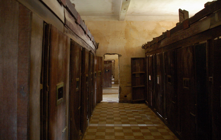 位于柬埔寨金邊市南,這里原本是一座高中學(xué)校,波布時(shí)期被用作關(guān)押犯人的集中營(yíng),也叫S-21監(jiān)獄。這里曾經(jīng)囚禁了17000多名知識(shí)分子、平民及婦孺,每天被折磨死的人不計(jì)其數(shù),直到1979年橫山林政權(quán)攻入金邊,這座集中營(yíng)只剩下14具尸體和7名幸存者。館內(nèi)展出的刑具和介紹令人毛骨悚然。另外每天上午10點(diǎn)和下午3點(diǎn)都有文獻(xiàn)記錄片播映。