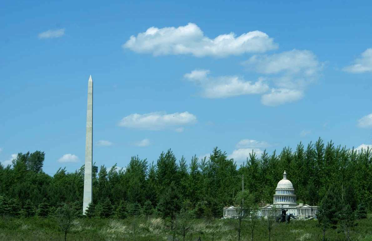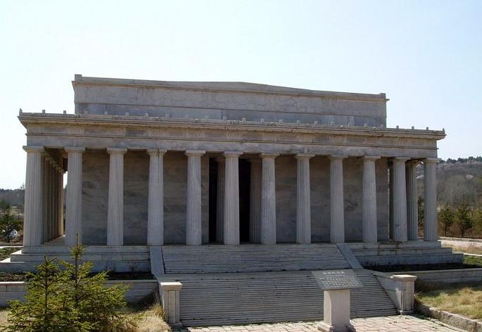 在美國南達(dá)科他州西南部海拔約1892米的布萊克山區(qū),一座高峰上刻鑿著美國歷史上卓具功勛的四位總統(tǒng)——華盛頓、杰斐遜、林肯和羅斯福的石雕頭像。每座頭像高18米,從1927年開始雕鑿,1941年才初步告成。四尊頭像充分展露其凝練的神態(tài),他們目光前視,儀表莊嚴(yán),用以代表美國業(yè)績的四大象征:創(chuàng)建國家、政治哲學(xué)、捍衛(wèi)獨(dú)立、擴(kuò)張與保守。總統(tǒng)山已不單是這個(gè)地區(qū)和城市的標(biāo)志,而且成為全美國教育的重要藝術(shù)中心。
