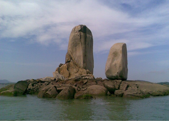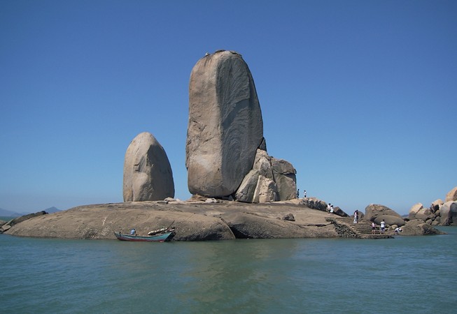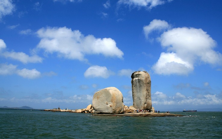 從看澳村岸邊坐渡船,十幾分鐘就到達(dá)礁石上,礁石底部是一組平坦完整的巖石。兩個石柱均由粗?;野咨幕◢弾r組成 東側(cè)的一個高達(dá)33米,胸寬9米,厚8米;西側(cè)的一個高17米,胸寬15米,厚8米。版權(quán)所有山東聊城聊之旅國際旅行社有限公司,轉(zhuǎn)載必究!兩個石柱的底部都是近似四方形體,直立在礁石上。據(jù)地質(zhì)學(xué)家考證是世界上最大的花崗巖球狀風(fēng)化海蝕柱。由于它的奇特壯觀,對游人有著強(qiáng)烈的震撼力和吸引力。建設(shè)部與中科院的專家稱之為:“壟斷性的世界級旅游資源。”明代旅行家陳第曾譽(yù)之為“天下奇觀”, 清朝女詩人林淑貞詩贊:“共說前朝帝子舟,雙帆偶趁此句留;料因濁世風(fēng)波險,一泊于今纜不收.