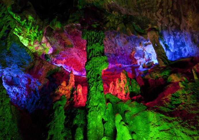 最妙的要數(shù)洞內(nèi)的"四絕"、"三奇"景觀。"四絕"為天溝、天板、天漕,玉螺賬,石鵝管和天外飛瀑。"三絕"為鐵索寒橋、雙井開天、地下長(zhǎng)河。此外,"龍?zhí)堵牆?、"群猴朝圣"、"洞中大龍湫"、"九龍壁"、"石葡萄"、"石褶裙"、"石針"、"石筍"、"葫蘆壽星"、"猴子撈月亮"、"八戒照鏡子"等景點(diǎn),以及王喬煉丹留下的勝跡,惟妙惟肖,令人目不暇接,嘆為觀止。