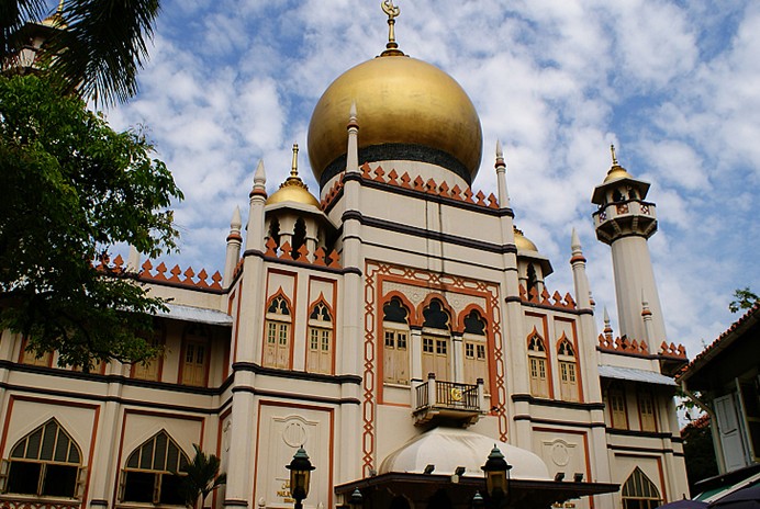 這座新加坡最大也最壯觀的宗教建筑的主祈禱堂可容納多達五千名教徒同時進行禮拜?;亟烫脫碛袃勺瘘S色的大圓頂,此外,有4個對稱的宣禮塔,以及許多小亭和小塔。 千萬別忘了仔細看看穹頂?shù)鬃?,其周邊圍繞了一圈由信徒獻上的玻璃瓶底,散發(fā)著耀目的光芒,也為這里增添了更多神圣的氣息。