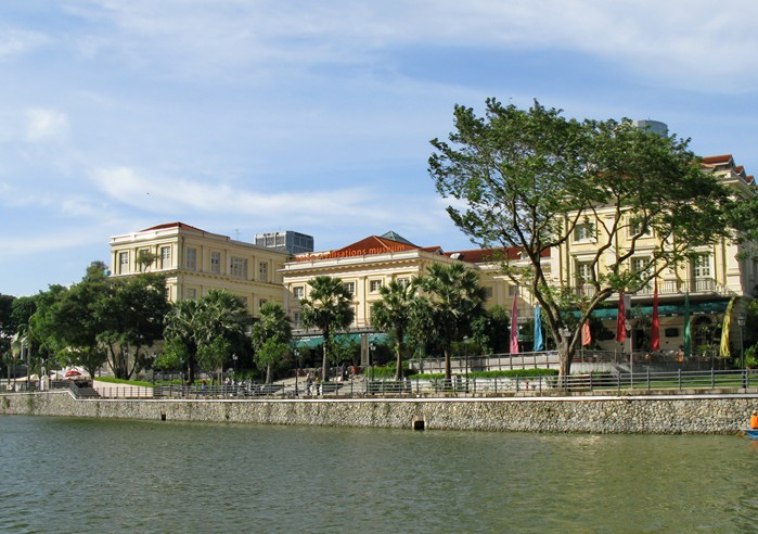 1864年建於皇后坊的亞洲文明博物館 (Asia Civilisations Museum),早期是英國殖民地以及現(xiàn)任政府的辦公大樓,有著濃厚的英式新古典主義風(fēng)格的建筑。進(jìn)入該博物館內(nèi),重點在介紹新加坡歷史源流,當(dāng)游人進(jìn)入展廳,曾是沿著新加坡河岸發(fā)展的新加坡,不斷有中國帆船、印度船、 阿拉伯獨桅帆船、葡萄牙戰(zhàn)艦和武吉士人(Bugis)的縱帆船造訪這個質(zhì)樸的海港,館內(nèi)過往的影像面對窗外運(yùn)河龐大商船吞吐的海港,今非昔比的繁華景象,形成了一個強(qiáng)烈的對比。這就是亞洲文明博物館企圖讓訪客深入了解新加坡的特殊文化。19世紀(jì)英人萊佛士爵士為拓展英國在亞洲的貿(mào)易發(fā)展,奠定了這個小漁港的未來發(fā)展。